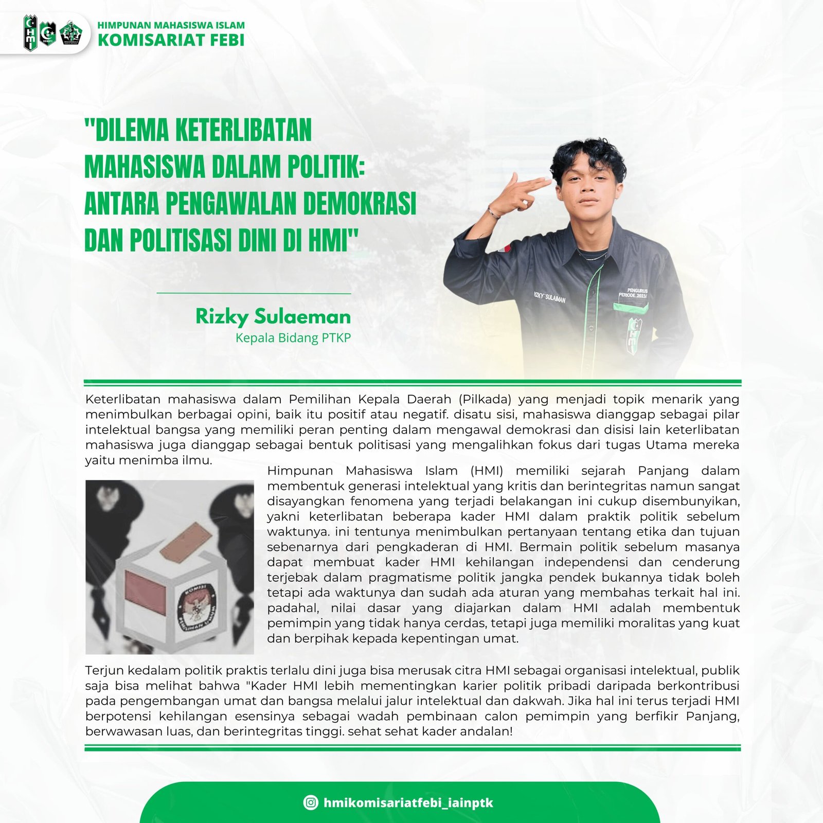 OPINI : DILEMA KETERLIBATAN MAHASISWA DALAM POLITIK (Antara Pengawalan Demokrasi dan Politisasi Dini di HMI)