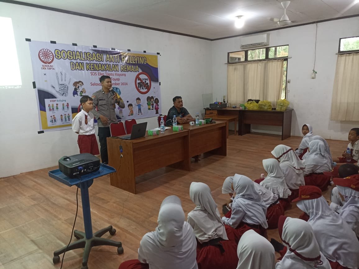 SUARAANAKKOLONG.CO.ID Nanga Tayap, 6 Desember 2024 – Kapolsek Nanga Tayap AKP H ADI SUDIRMAN melalui Bhabinkamtibmas Polsek Nanga Tayap, Briptu Hendra S., menggelar sosialisasi tentang Anti-Bullying dan Kenakalan Remaja di SD Swasta Eka Tjipta Kayung, yang berlokasi di Kecamatan Nanga Tayap. Kegiatan ini bertujuan untuk memberikan pemahaman kepada para siswa tentang pentingnya menjaga sikap saling menghormati serta menghindari perilaku negatif yang dapat merugikan diri sendiri dan orang lain.