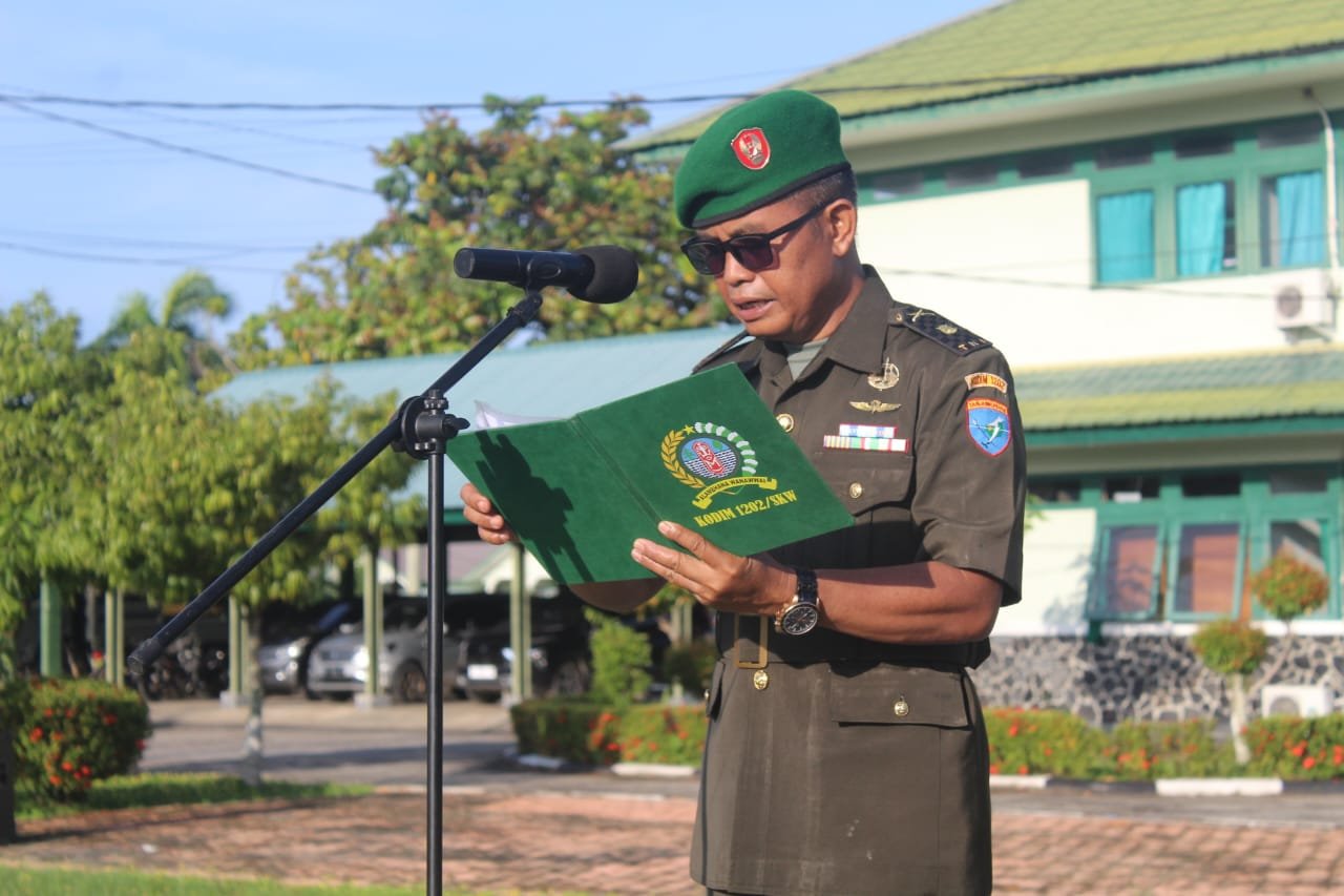 SUARAANAKKOLONG.CO.ID Minggu,15/12/2024, Singkawang – Kasdim 1202/Singkawang, Mayor Inf Sugiyono bertindak sebagai inspektur upacara, dalam rangka memperingati hari Juang TNI AD ke 79 tahun 2024 dengan tema “TNI AD BERJUANG BERSAMA RAKYAT” bertempat di Lapangan Upacara Makodim 1202/Singkawang, Jl. Alianyang, Kel. Pasiran, Kec. Singkawang Barat, Kota Singkawang.