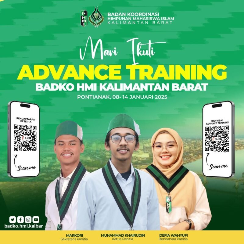 Advance Training (LK-III) Himpunan Mahasiswa Islam (HmI) akan segera dilaksanakan di Kalimantan Barat pada bulan Januari 2025. Program pelatihan ini bertujuan untuk memberikan peningkatan kemampuan dan pengetahuan kepada anggota HmI dalam berbagai bidang. Peserta diharapkan dapat mempersiapkan diri dengan baik untuk mengikuti Advance Training yang akan menjadi sarana pembelajaran dan pengembangan potensi dalam meningkatkan kualitas kader HmI.