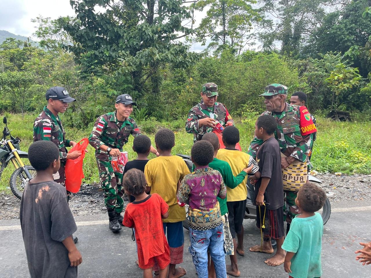SUARAANAKKOLONG.CO.ID Yalimo – Dalam rangka menyambut perayaan Natal, Pos Benawa Satgas Yonif 641/Bru berkolaborasi dengan Koramil 1702-05/Benawa menggelar kegiatan berbagi bingkisan suka cita Natal untuk anak-anak di wilayah Distrik Benawa, Kabupaten Yalimo, Provinsi Papua Pegunungan, (23/12/2024).