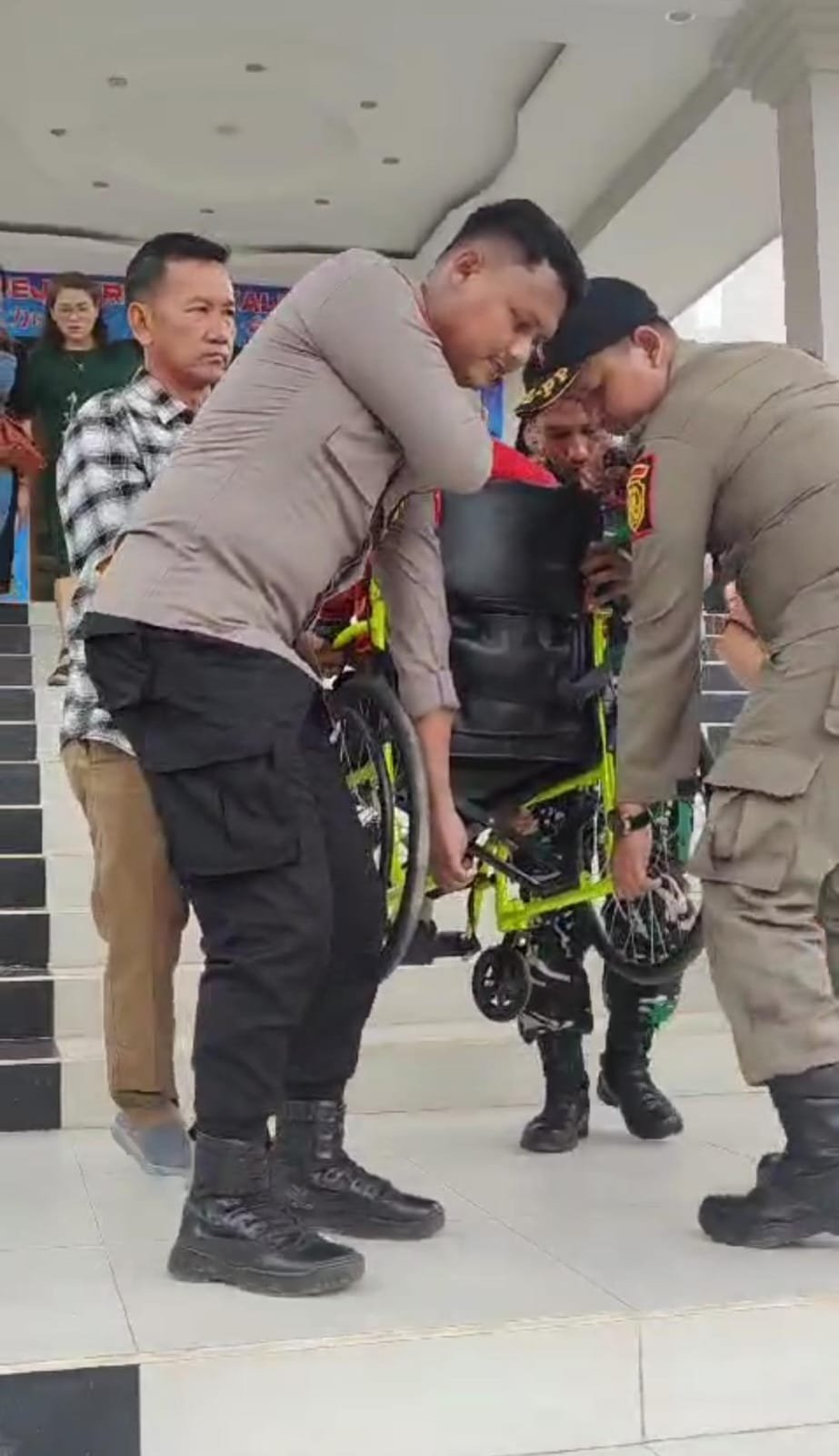 Pada Rabu (25/12), salah satu bentuk pelayanan yang diberikan adalah bantuan kepada jemaat GKKB, terutama kepada para lansia yang mengikuti ibadah Natal. Personil pengamanan membantu mengangkat kursi roda jemaat lansia untuk memastikan mereka dapat mengikuti ibadah dengan nyaman dan aman.