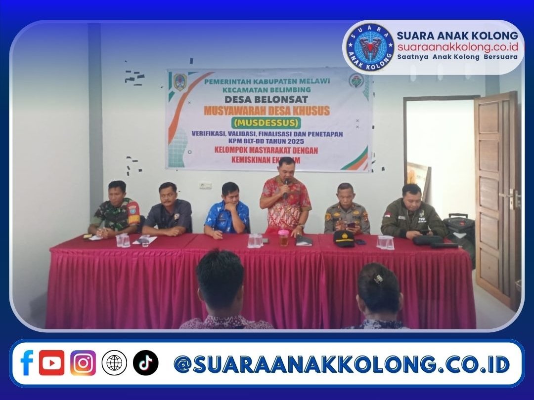 SUARAANAKKOLONG.CO.ID Melawi, 31 Januari 2025 Polsek Belimbing Polres Melawi Polda Kalbar – Pemerintahan Desa Belonsat melaksanakan Musyawarah Desa Khusus (Musdessus) Verifikasi, Validasi, Finalisasi dan Penetapan Keluarga Penerima Manfaat Bantuan Langsung Tunai Dana Desa (KPM BLT-DD) tahun 2025, musdessus yang dilaksanakan di kantor desa di hadiri Kapolsek Belimbing AKP Samuji, Sekcam Belimbing, Kades Belonsat Supinus Enteng, Ketua TP-PKK Saldiah Mirnawati, Ketua BPD Belonsat, Bhabinkamtibmas, Babinsa, Pendamping Desa, Pendamping lokal desa, perangkat desa, tokoh agama, tokoh masyarakat, tokoh adat dan undangan.