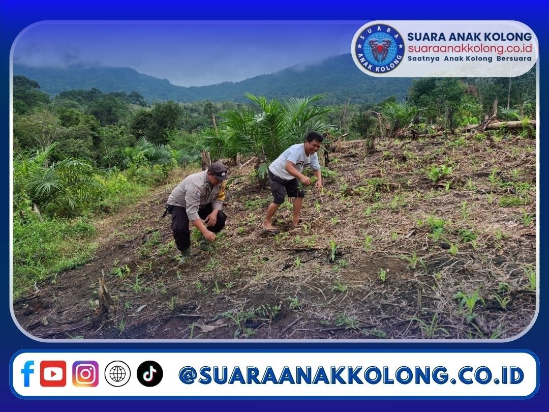 SUARAANAKKOLONG.CO.ID Sengah Temila ~ Polres Landak ~ Polda Kalbar ~ Selaku Bintara Penggerak Ketahanan Pangan Polsek Sengah Temila, Aipda Maryono melaksanakan pemantauan dan pengecekan kebun milik kelompok tani Pak Ojak yang berada di Dusun Serimbang, Desa Senakin, Kecamatan Sengah Temila, Kabupaten Landak. Kebun tersebut saat ini telah memasuki usia tanam 12 hari.”.