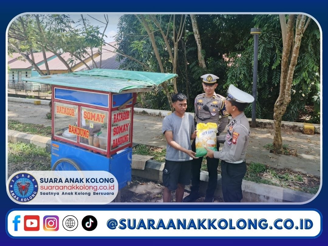 Dalam kegiatan ini, petugas Satlantas tidak hanya memastikan kelancaran arus lalu lintas, tetapi juga menyalurkan bantuan sosial berupa tiga karung beras (5 kg) kepada pedagang keliling. Dua karung beras diberikan kepada pedagang siomay di Jalan Panglima Naga, sementara satu karung lainnya diserahkan kepada pedagang pentol kuah di Jalan Merdeka Timur.