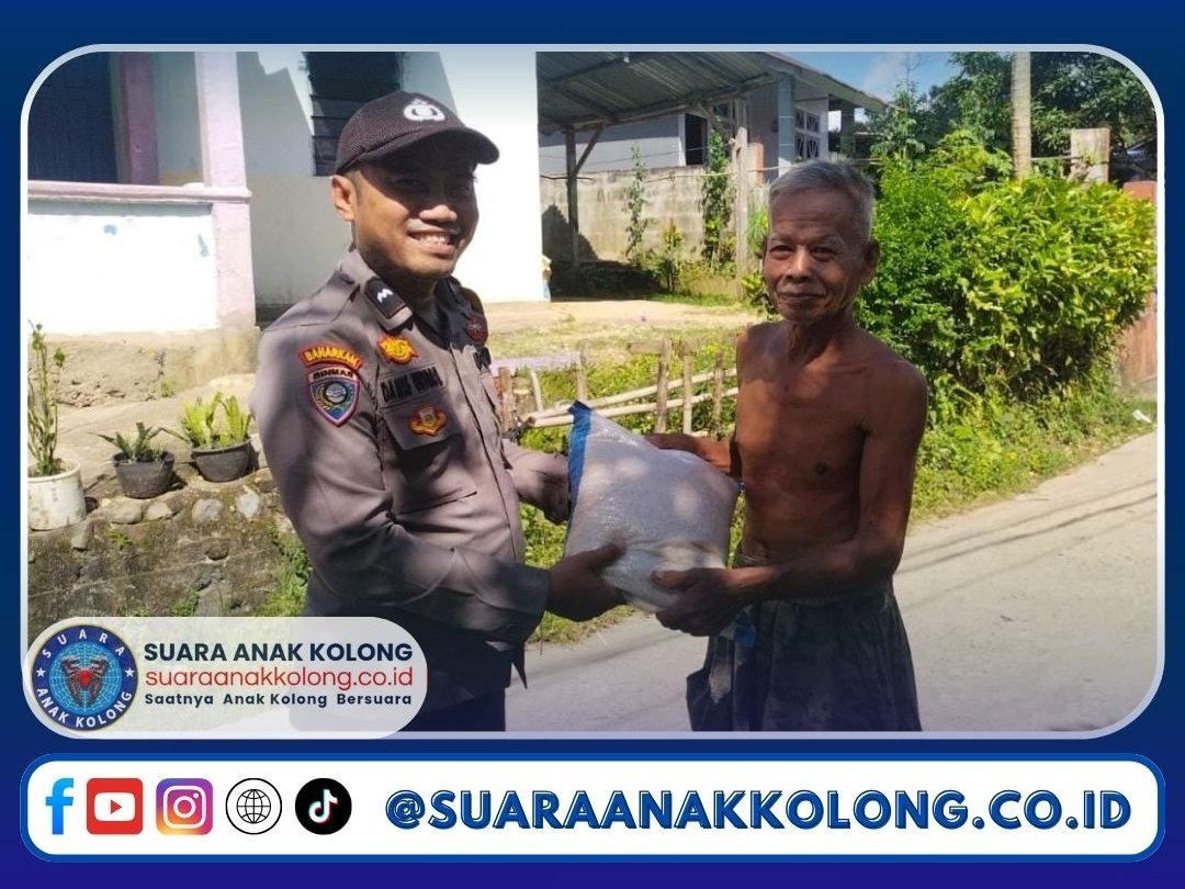 Aipda Danis Untoro menyerahkan bantuan beras secara langsung kepada warga dengan harapan dapat sedikit meringankan beban ekonomi mereka, terutama di tengah kesulitan yang dihadapi akibat dampak ekonomi.