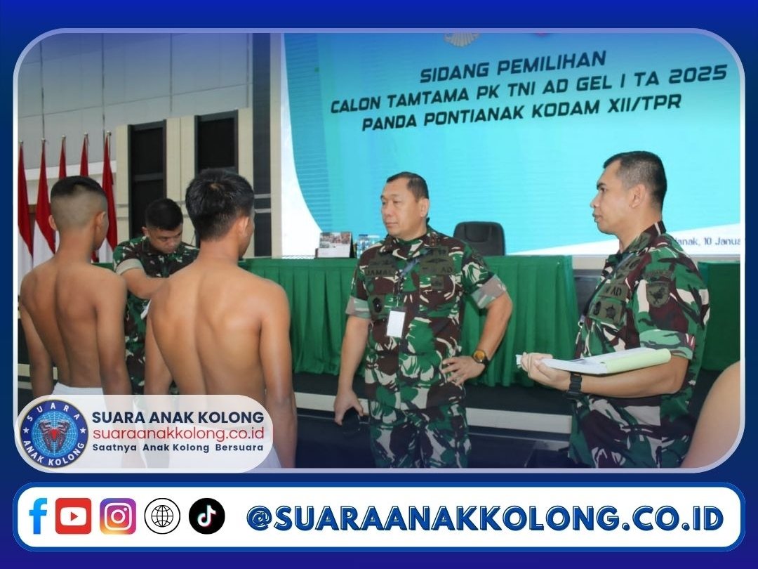 SUARAANAKKOLONG.CO.ID Kubu Raya, 10 Februari 2025 – Pangdam XII/Tanjungpura Mayjen TNI Jamallulael, S.Sos., M.Si., memimpin Sidang Pemilihan Calon Tamtama PK TNI AD Gelombang I TA 2025 Panda Pontianak yang diselenggarakan di Aula Sudirman, Makodam XII/Tpr.