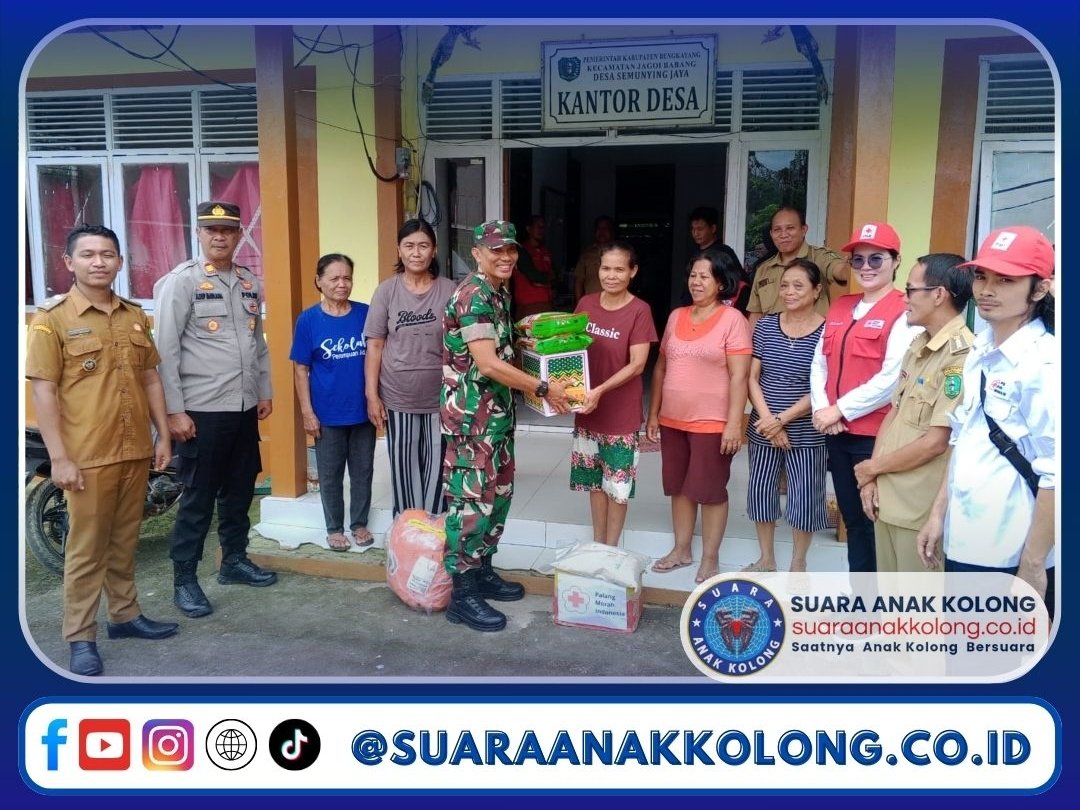 SUARAANAKKOLONG.CO.ID Bengkayang, 15 Februari 2025 – Babinsa Koramil 07/Jagoi Babang, dipimpin oleh Pjs. Danramil Jagoi Babang Lettu Inf Sabar Manuel Sihombing, mendampingi penyaluran bantuan pasca banjir dari Ketua PMI Kabupaten Bengkayang, Ibu Anita S. Darwis, kepada warga terdampak di Kantor Desa Semunying Jaya, Dusun Pareh, Kecamatan Jagoi Babang, Kabupaten Bengkayang.
