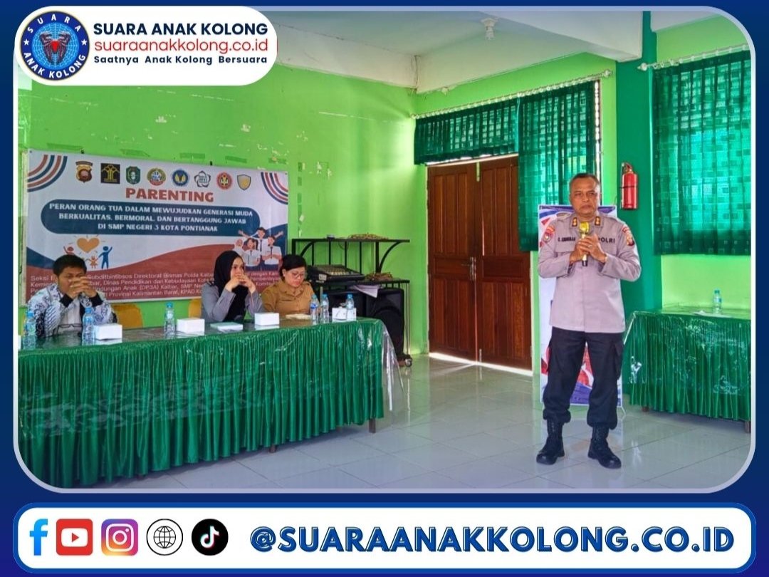 SUARAANAKKOLONG.CO.ID Pontianak, 18 Februari 2025 Kalbar – Bertempat di SMPN 3 Kota Pontianak, Dit Binmas Polda Kalbar melaksanakan kegiatan pembinaan pemuda, anak, dan wanita.. Kegiatan ini mengangkat tema “Peran Orang Tua dalam Mewujudkan Generasi Muda Berkualitas, Bermoral, dan Bertanggung Jawab.”