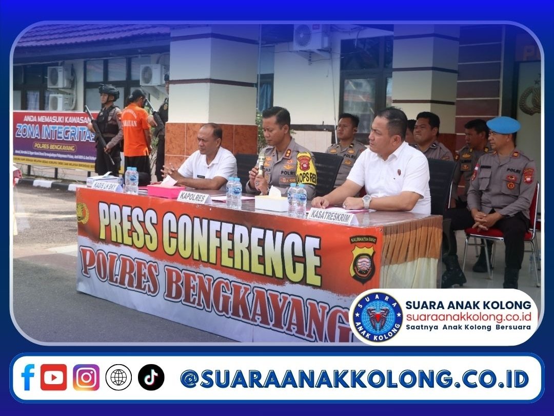 SUARAANAKKOLONG.CO.ID Bengkayang, 19 Februari 2025 Kalbar – Polres Bengkayang Polda Kalbar menggelar konferensi pers terkait pengungkapan kasus tindak pidana illegal mining atau pertambangan tanpa izin di Desa Kinande, Kecamatan Lembah Bawang, Kabupaten Bengkayang di halaman Polres Bengkayang dan dihadiri oleh sejumlah pejabat kepolisian serta para awak media.