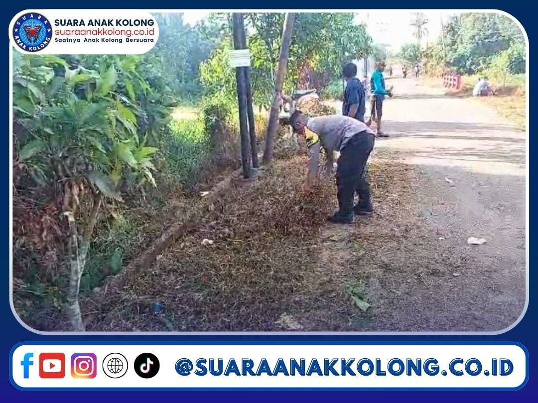 Gotong royong ini melibatkan berbagai elemen masyarakat, termasuk warga sekitar dan aparat kepolisian, yang bersama-sama membersihkan rumput liar di tepi jalan serta mengumpulkan sampah yang berserakan. Kegiatan ini bertujuan menciptakan lingkungan yang lebih sehat dan nyaman bagi masyarakat sekitar.