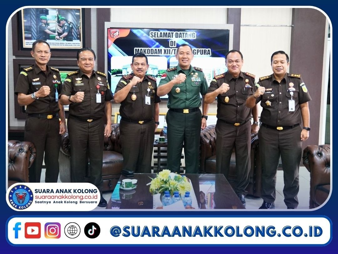 SUARAANAKKOLONG.CO.ID Kubu Raya, 26 Februari 2025 – Pangdam XII/Tanjungpura, Mayjen TNI Jamallulael, S.Sos., M.Si., menerima kunjungan silaturahmi dari Kepala Kejaksaan Tinggi (Kajati) Kalimantan Barat, Edyward Kaban, S.H., M.H., di Koridor Kehormatan, Makodam XII/Tpr, Rabu (26/2/2025).