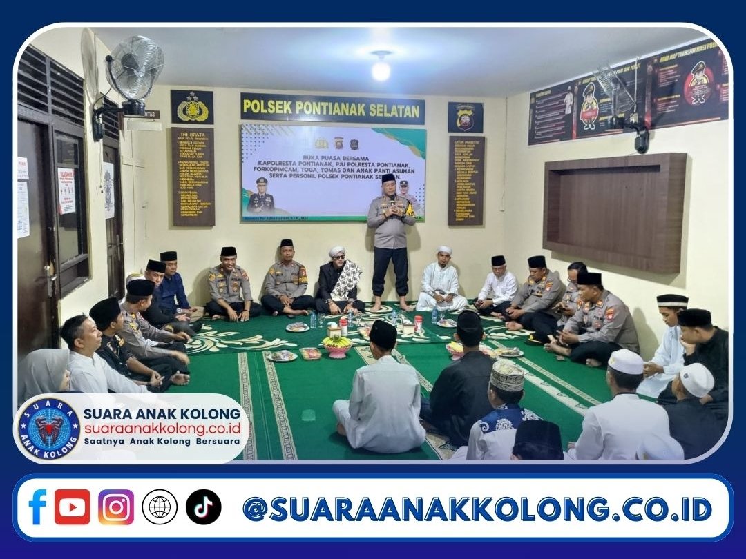 SUARAANAKKOLONG.CO.ID, Pontianak, 07 Maret 2025 Kalbar – Kapolresta Pontianak, Kombes Pol Adhe Hariadi, S.I.K., M.H., menggelar acara buka puasa bersama anak-anak Panti Asuhan Pepabri dan Tahfiz Qur’an Keluarga Kita di Aula Polsek Pontianak Selatan, Jumat (7/3/2025).