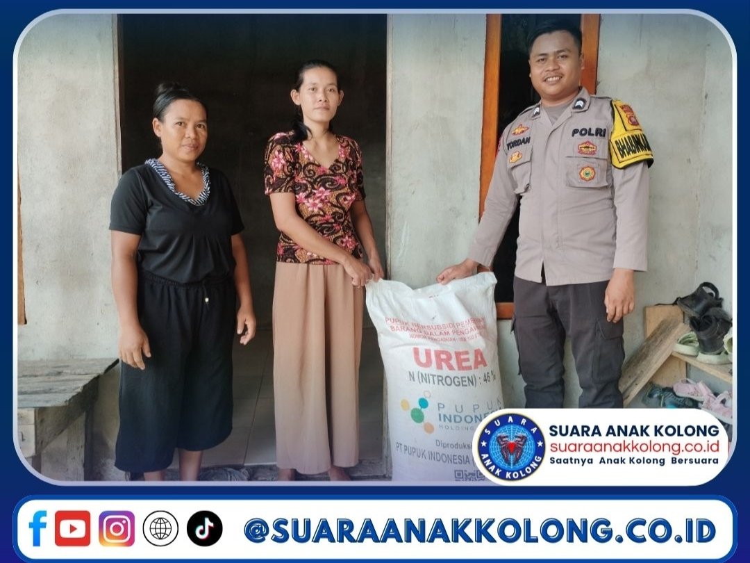 SUARAANAKKOLONG.CO.ID, Mandor – Dalam upaya mendukung ketahanan pangan nasional, Bintara Penggerak Ketahanan Pangan Briptu Yordanus Alola menyerahkan bantuan pupuk kepada Kelompok Wanita Tani (KWT) Dahlia di Desa Kayu Tanam, Kecamatan Mandor, Kabupaten Landak.