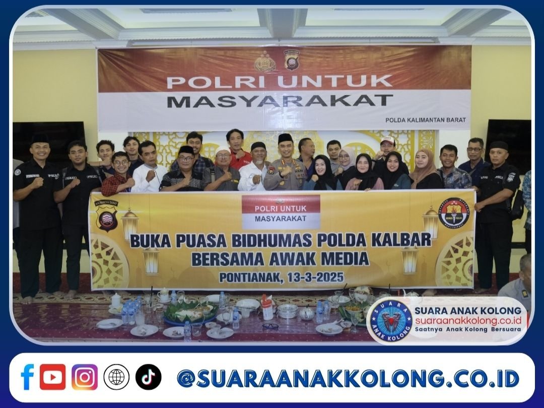 SUARAANAKKOLONG.CO.ID, Pontianak, 13 Maret 2025 – Polda Kalimantan Barat menggelar acara buka puasa bersama dengan Dewan Pers, pimpinan redaksi media, serta wartawan se-Kalimantan Barat. Kegiatan ini berlangsung di Masjid An-Nur Polda Kalbar dan diikuti secara serentak oleh seluruh jajaran Polda melalui Zoom Meeting bersama Kapolri.