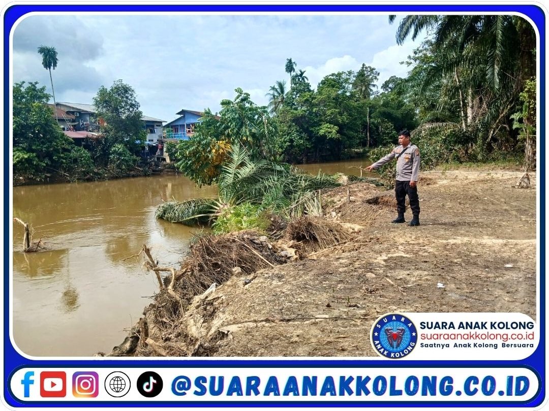 Bhabinkamtibmas Desa Menjalin, Bripka H. Riyanto, melakukan pengecekan debit air Sungai Menjalin untuk mengantisipasi kemungkinan terjadinya banjir.
