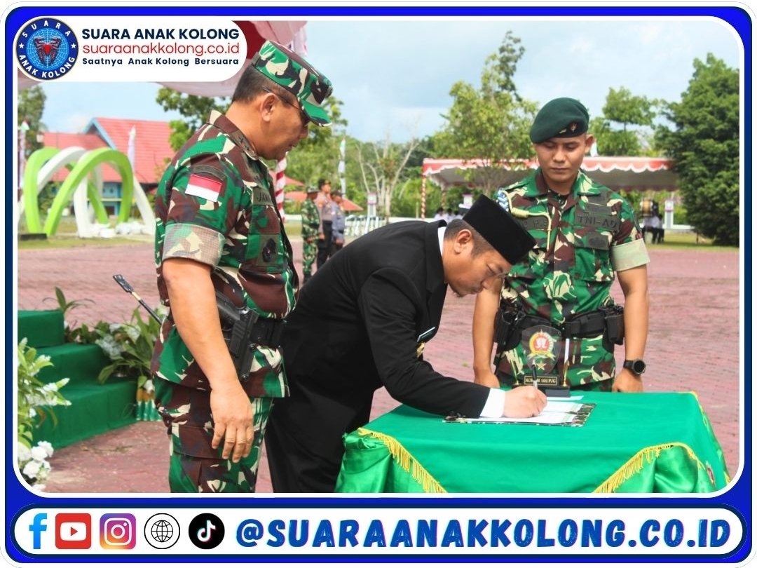 Penutupan ini ditandai dengan pernyataan resmi Pangdam XII/Tpr dan penandatanganan laporan pelaksanaan TMMD oleh Dansatgas TMMD Kodim 1014/Pbn, Letkol Inf Makin, S.Sos., M.I.P., bersama dengan Bupati Sukamara, H. Masduki.