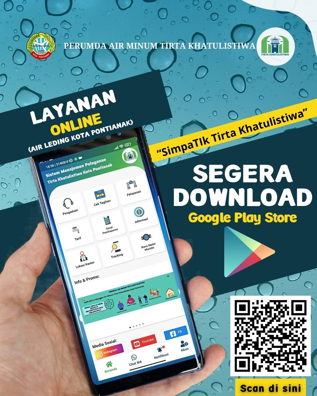 Untuk mengunduh aplikasi SimpaTiK, masyarakat dapat mencarinya di Play Store atau App Store dengan kata kunci “SimpaTik Tirta Khatulistiwa”.