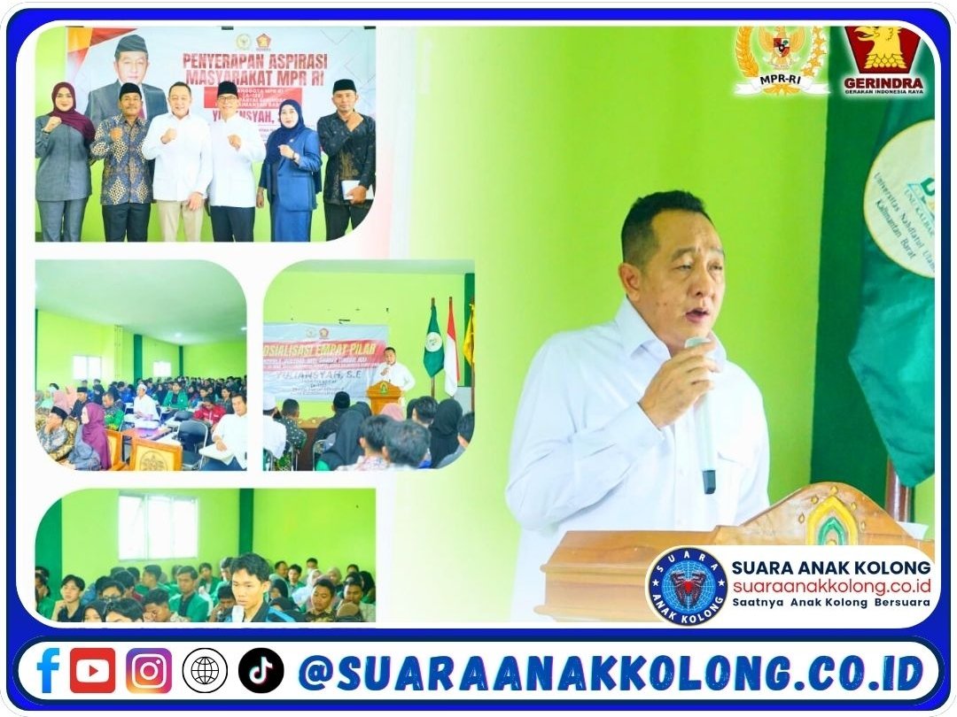 SUARAANAKKOLONG.CO.ID, Kubu Raya, 24 April 2025 – Anggota DPR RI dari Fraksi Partai Gerindra, Yuliansyah, menggelar kegiatan Sosialisasi 4 Pilar Kebangsaan sekaligus Penyerapan Aspirasi Masyarakat di Aula Universitas Nahdatul Ulama (UNU), Sungai Raya, Kabupaten Kubu Raya, Kamis (24/4/2025). Acara ini mengangkat tema “Pemenuhan Hak Dasar Warga Negara Menurut UUD NRI Tahun 1945” dan diikuti oleh sekitar 160 mahasiswa dari berbagai program studi.