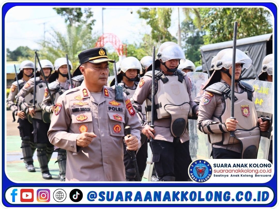 SUARAANAKKOLONG.CO.ID Melawi, 30 April 2025 – Menjelang peringatan Hari Buruh Internasional (May Day) 2025, Polres Melawi Polda Kalbar menggelar latihan kesiapsiagaan pengendalian massa (Dalmas) di Lapangan Apel Bhayangkara, Rabu (30/4/2025). Latihan ini dipimpin oleh Kasat Samapta AKP Bhakti Juni Ardi, S.H., dan disimulasikan dengan asumsi situasi nyata untuk memastikan kesiapan personel menghadapi kemungkinan aksi unjuk rasa.