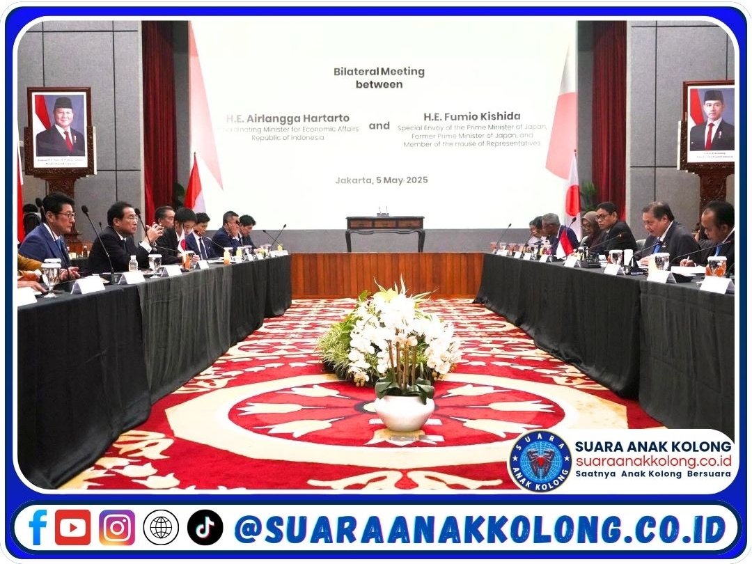 SUARAANAKKOLONG.CO.ID, Jakarta – Indonesia dan Jepang kembali menegaskan komitmen kuat mereka dalam membangun masa depan yang hijau dan berkelanjutan. Hari ini, Menko Perekonomian RI menerima kunjungan Utusan Khusus Perdana Menteri Jepang, Bapak Fumio Kishida, dalam agenda Bilateral Meeting dan Penandatanganan Tahapan Financial Close untuk Proyek Pembangkit Listrik Tenaga Panas Bumi (PLTP) Muara Laboh, bertempat di kantor Kemenko Perekonomian.