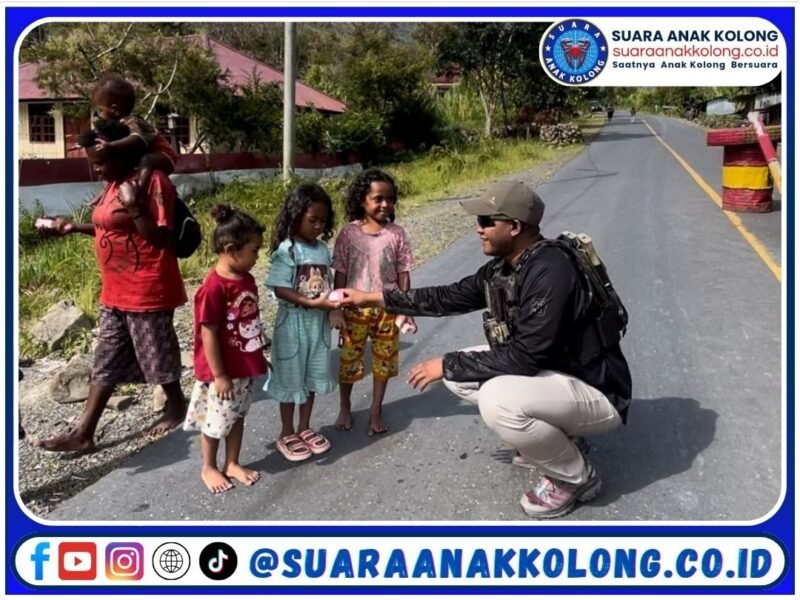 SUARAANAKKOLONG.CO.ID, Puncak Jaya – Dalam upaya mempererat hubungan dan membangun kepercayaan masyarakat, personel Satgas Humas Operasi Damai Cartenz-2025 melaksanakan kegiatan kemanusiaan dengan membagikan sembako dan makanan ringan kepada warga Kampung Kulirik, Distrik Muara, Kabupaten Puncak Jaya, Jumat (2/5/2025).