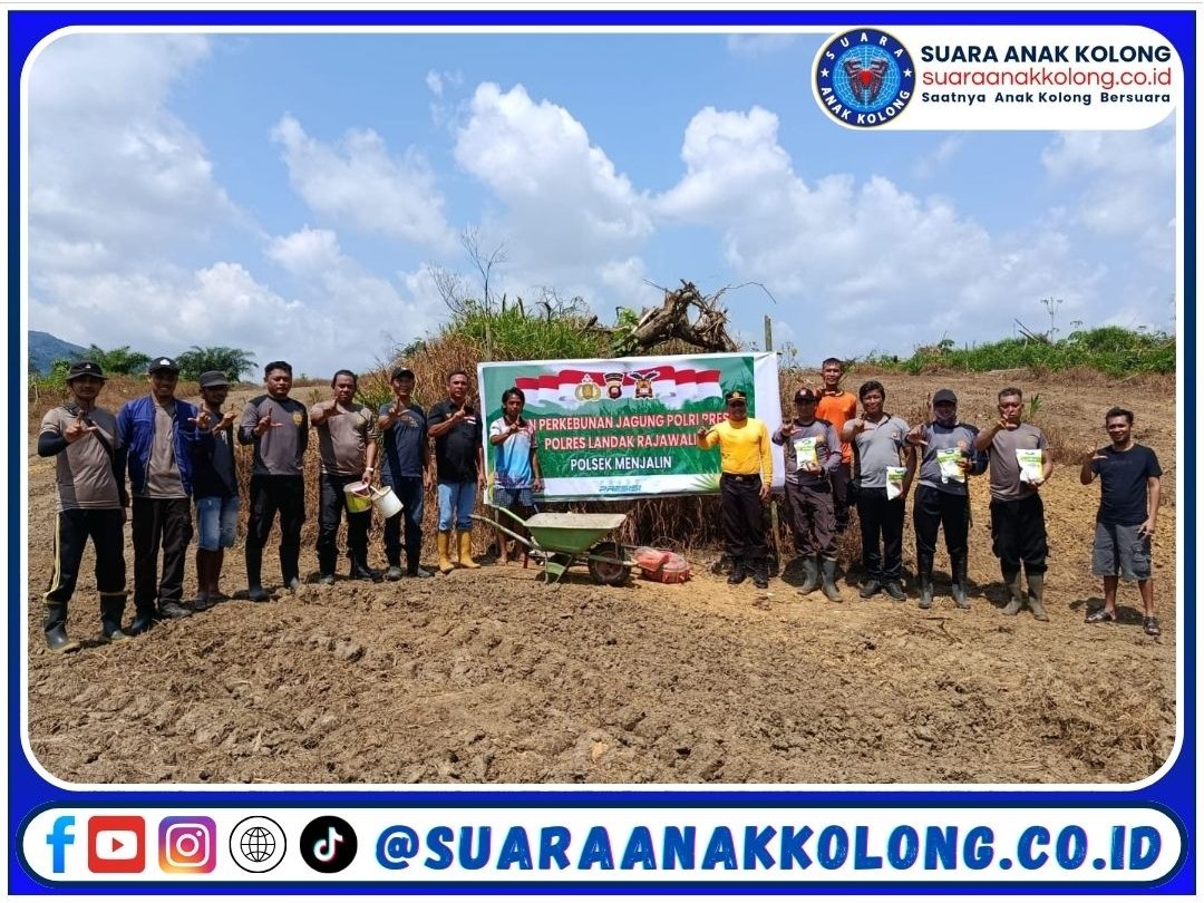 SUARAANAKKOLONG.CO.ID, Menjalin – Dalam rangka mendukung program ketahanan pangan nasional, Polsek Menjalin, Polres Landak, melaksanakan kegiatan penanaman jagung perdana di Lahan Perkebunan Jagung Polri Presisi Polres Landak Rajawali, Selasa (5/5/2025).