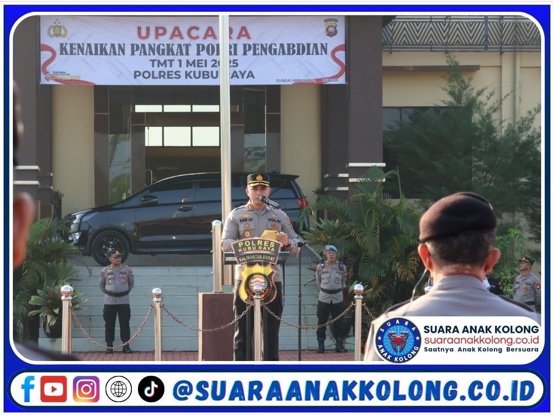 SUARAANAKKOLONG.CO.ID, KUBU RAYA – Suasana haru dan khidmat mewarnai upacara kenaikan pangkat pengabdian di lingkungan Polres Kubu Raya pada Senin pagi, 5 Mei 2025. Dalam upacara yang berlangsung di halaman Mapolres Kubu Raya sejak pukul 07.00 WIB tersebut, IPTU Marwoto resmi naik pangkat menjadi Ajun Komisaris Polisi (AKP), sebagai bentuk penghargaan atas dedikasinya dalam pengabdian kepada institusi Polri.