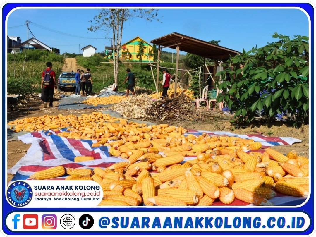 SUARAANAKKOLONG.CO.ID MELAWI, 24 MEI 2025 – Setelah pelaksanaan panen jagung pada Jumat (23/5/2025) yang dipimpin langsung oleh Kapolres Melawi Polda Kalbar, AKBP Harris Batara Simbolon, S.H., S.I.K., M.Tr.Opsla bersama Waka Polres Kompol Aang Permana, S.I.P., S.H., M.A.P., jajaran PJU Polres Melawi, Dinas Pertanian, serta Petugas Penyuluh Lapangan (PPL), Kelompok Tani “Maju Makmur” melanjutkan kegiatan pasca panen dengan proses pengeringan jagung secara manual di Desa Kelakik, Kecamatan Nanga Pinoh, tepatnya di area belakang Kantor Bupati Melawi pada Sabtu (24/5/2025).