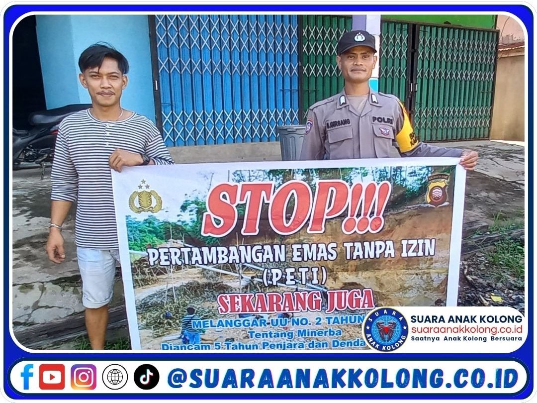 SUARAANAKKOLONG.CO.ID | NANGA PINOH, 25 MEI 2025 – Dalam rangka mencegah aktivitas Pertambangan Emas Tanpa Izin (PETI) yang merusak lingkungan dan melanggar hukum, Polsek Nanga Pinoh, Polres Melawi, Polda Kalimantan Barat, terus menggencarkan sosialisasi kepada masyarakat, salah satunya melalui pemasangan spanduk imbauan di sejumlah titik strategis.