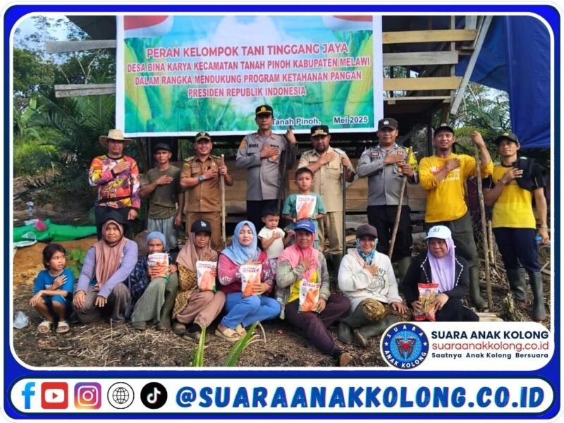 SUARAANAKKOLONG.CO.ID Tanah Pinoh, Melawi, 27 Mei 2025 – Kapolsek Kota Baru, IPTU Edi Herianto, bersama Camat Tanah Pinoh Budiman, S.Sos., M.Ap., dan Kepala Desa Bina Karya Murdani, S.H., turut melaksanakan kegiatan penanaman bibit jagung bersama Kelompok Tani Tinggang Jaya di Desa Bina Karya, Kecamatan Tanah Pinoh, Kabupaten Melawi.