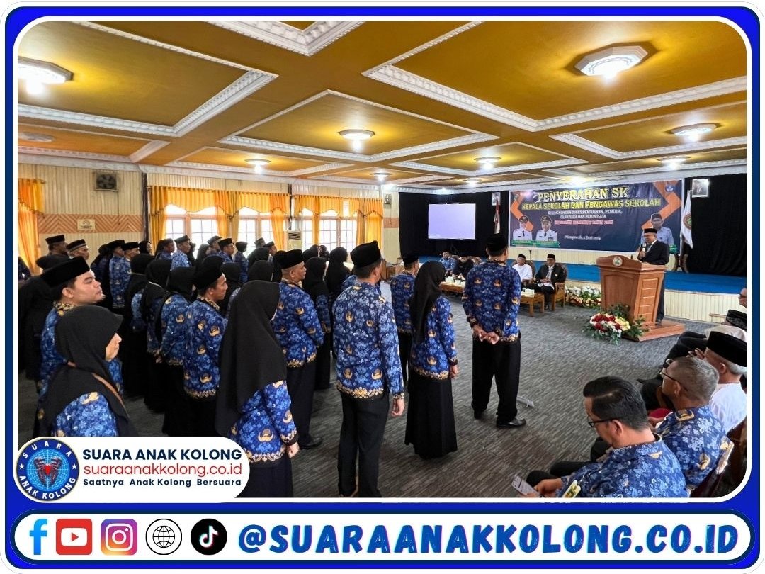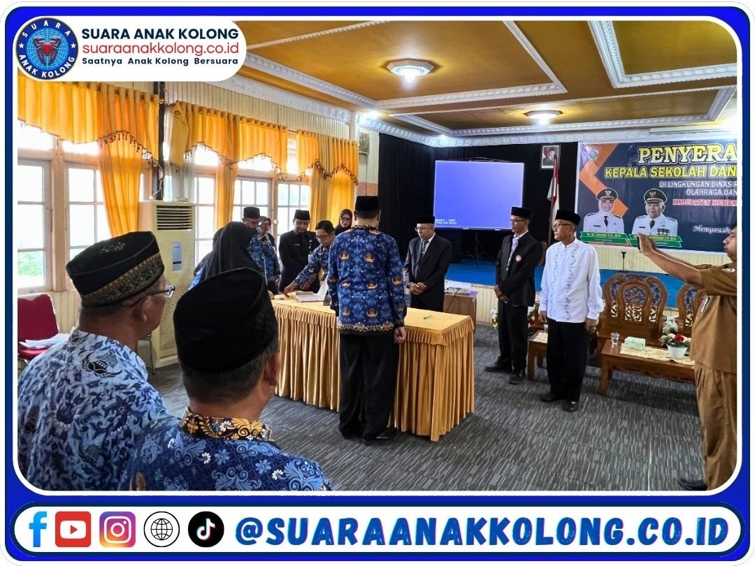 SUARAANAKKOLONG.CO.ID Mempawah – Senin, 2 Juni 2025 Sebanyak 90 pejabat pendidikan di Kabupaten Mempawah resmi menerima Surat Keputusan (SK) penugasan baru dari Dinas Pendidikan, Pemuda, Olahraga, dan Pariwisata Kabupaten Mempawah. Penyerahan SK tersebut digelar di Gedung PGRI Mempawah dan dipimpin langsung oleh Kepala Dinas El Zuratnam, disaksikan oleh Ketua PGRI dan Ketua Dewan Pendidikan Kabupaten Mempawah.