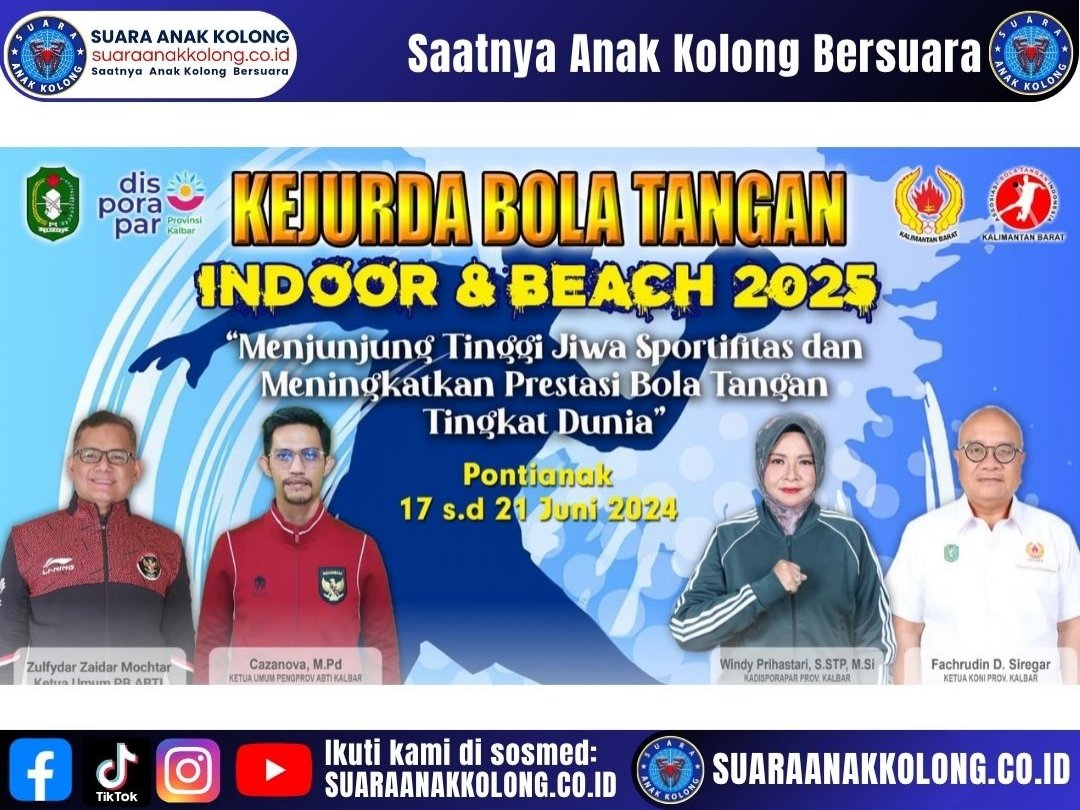 SUARAANAKKOLONG.CO.ID Pontianak, 9 Juni 2025 — Sebanyak 10 kabupaten/kota di Kalimantan Barat resmi menyatakan kesiapan mereka mengikuti Kejuaraan Daerah (Kejurda) Bola Tangan Indoor dan Pantai Putra/Putri 2025, yang akan digelar pada 17–21 Juni 2025.