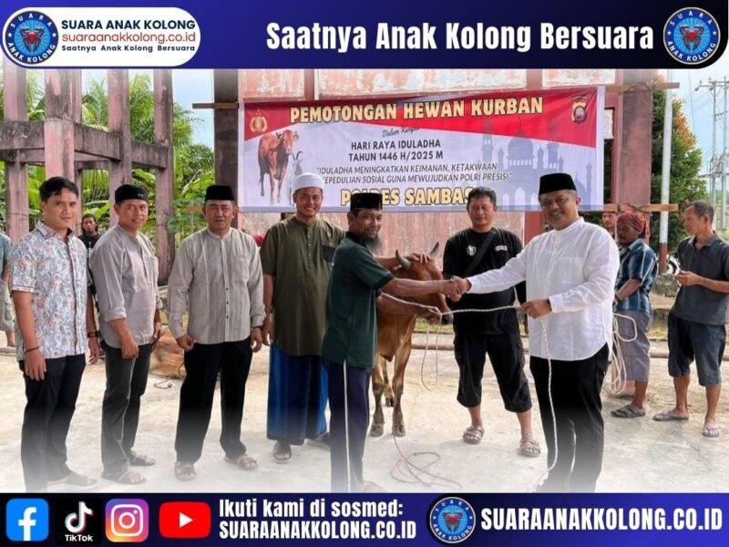 SUARAANAKKOLONG.CO.ID Sambas, 6 Juni 2025 — Polres Sambas ambil peran nyata dalam momen Idul Adha 1446 H dengan menggelar penyembelihan dan pendistribusian hewan kurban secara besar-besaran, Jumat (6/6/2025) di Garasi Baglog Polres Sambas.