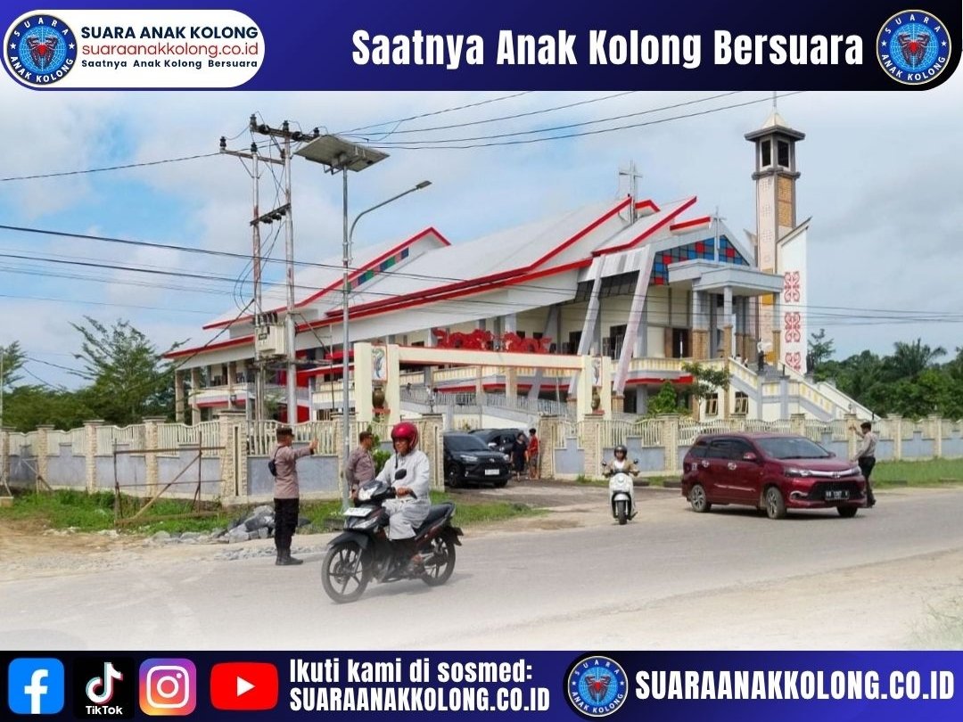 SUARAANAKKOLONG.CO.ID SEKADAU — Guna memastikan kelancaran dan keamanan lalu lintas saat ibadah Minggu, jajaran Polres Sekadau, Polda Kalbar, melaksanakan pengamanan dan pengaturan arus kendaraan di sekitar Gereja Agung Santo Petrus dan Paulus, Jalan Merdeka Timur, Sekadau, pada Minggu pagi (8/6/2025).