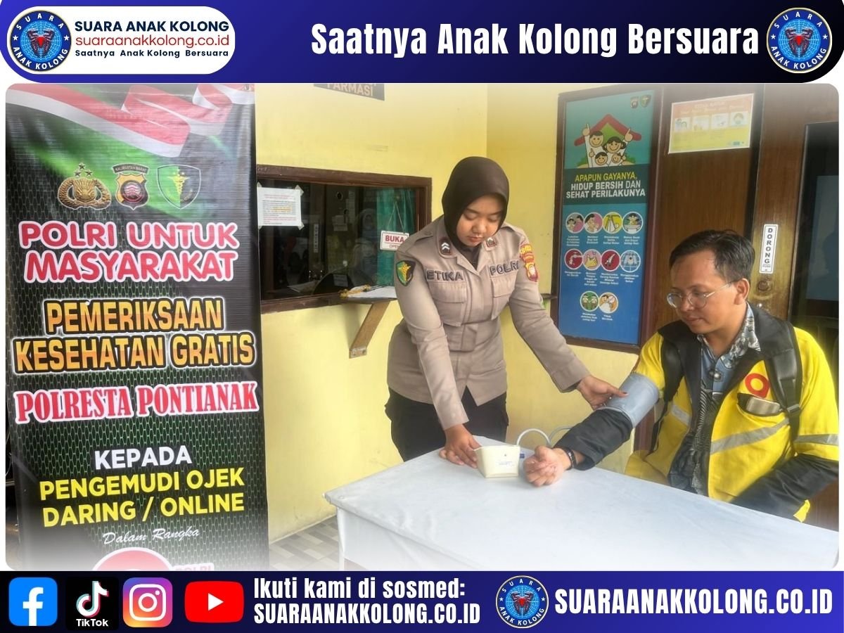 SUARAANAKKOLONG.CO.ID PONTIANAK – Menyambut Hari Bhayangkara ke-79 tahun 2025, Polresta Pontianak melalui Seksi Kedokteran dan Kesehatan (Sidokkes) mengadakan kegiatan Bakti Kesehatan gratis bagi para pengemudi ojek online (ojol) di Kota Pontianak, Sabtu (14/06/2025).