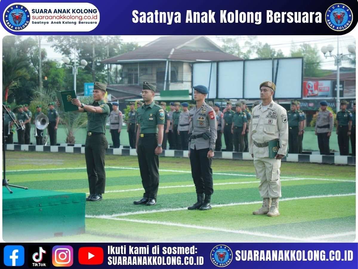 Inspektur upacara membacakan amanat dari Panglima Kodam XII/Tanjung Pura, yang menekankan pentingnya sinergi antara TNI dan Polri sebagai penjaga stabilitas dan pendukung pembangunan nasional.