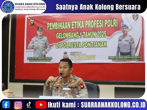 SUARAANAKKOLONG.CO.ID, PONTIANAK – 24 Juni 2025 Dalam rangka memperkuat integritas, disiplin, dan profesionalisme di lingkungan Kepolisian, Polresta Pontianak menggelar kegiatan Pembinaan Etika Profesi Polri Gelombang I Tahun 2025 bekerja sama dengan Bidpropam Polda Kalbar. Kegiatan ini berlangsung pada Selasa, 24 Juni 2025, di Aula Mapolresta Pontianak.
