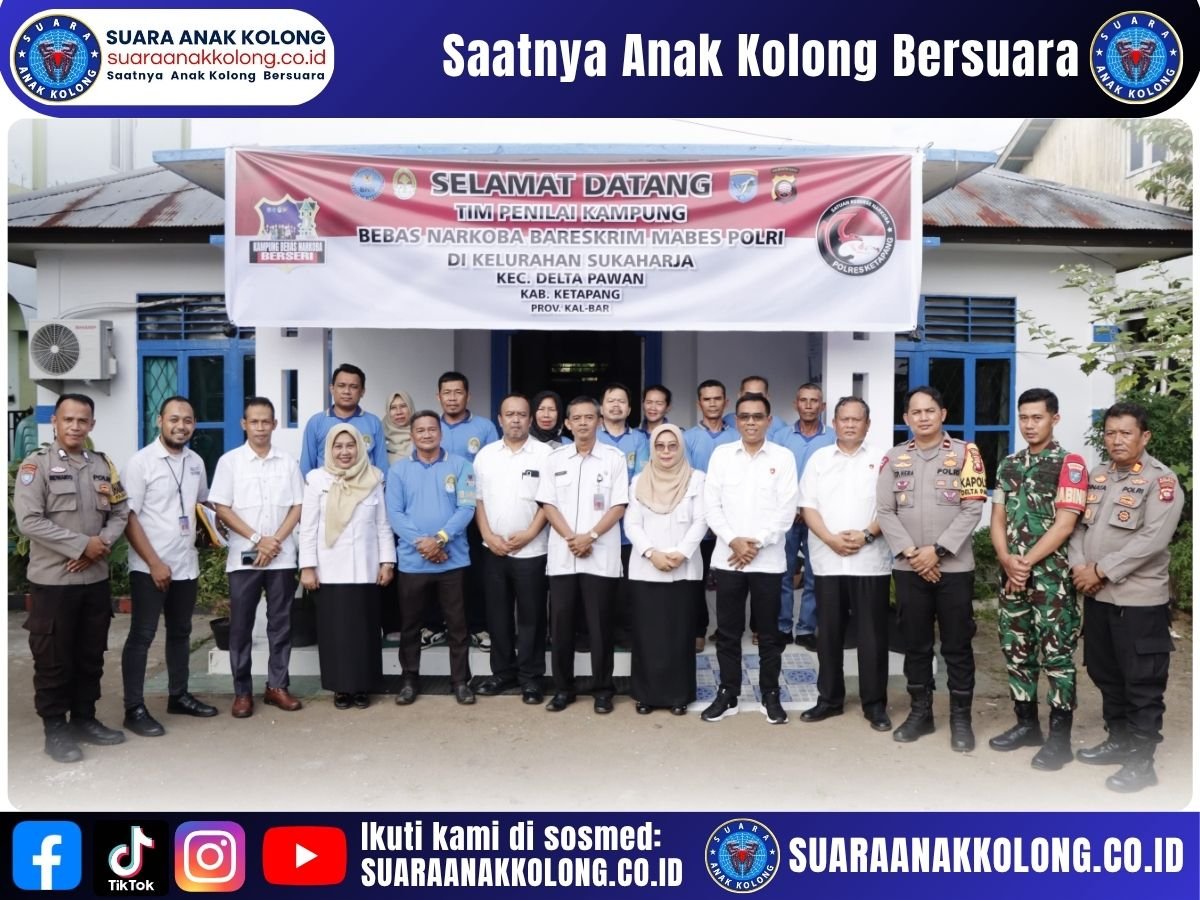 SUARAANAKKOLONG.CO.ID KETAPANG – Kelurahan Sukaharja, Kecamatan Delta Pawan, Kabupaten Ketapang, Kalimantan Barat, menjadi salah satu kandidat kuat dalam program nasional “Kampung Bebas dari Narkoba”. Pada Rabu (25/06/2025) pukul 14.00 WIB, tim penilai dari Bareskrim Mabes Polri melakukan kunjungan resmi ke wilayah tersebut dalam rangka menilai kesiapan dan komitmen masyarakat dalam memerangi peredaran narkotika.