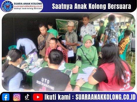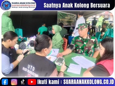 SUARAANAKKOLONG.CO.ID, BENGKAYANG — Dalam rangka menyambut Hari Ulang Tahun (HUT) ke-67 Kodam XII/Tanjungpura, Kodim 1209/Bengkayang (Bky) menggelar kegiatan bakti sosial donor darah yang melibatkan anggota TNI, Persit KCK Cabang LVI, dan masyarakat setempat. Kegiatan ini berlangsung di Koramil 01/Bky, Jalan Bambang Ismoyo, Kecamatan Bengkayang, Kabupaten Bengkayang, pada Senin (14/7/2025).
