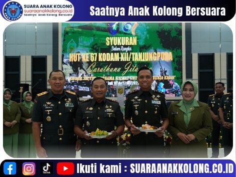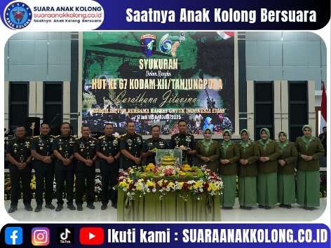 SUARAANAKKOLONG.CO.ID, KUBU RAYA 17 Juli 2025 Kodam XII/Tanjungpura memperingati Hari Ulang Tahun ke-67 pada Kamis (17/7/2025) dengan acara syukuran sederhana namun penuh makna yang berlangsung di Aula Sudirman, Makodam XII/Tpr. Acara dipimpin langsung oleh Pangdam XII/Tpr, Mayjen TNI Jamallulael, S.Sos., M.Si., dan dihadiri keluarga besar Kodam serta undangan kehormatan.