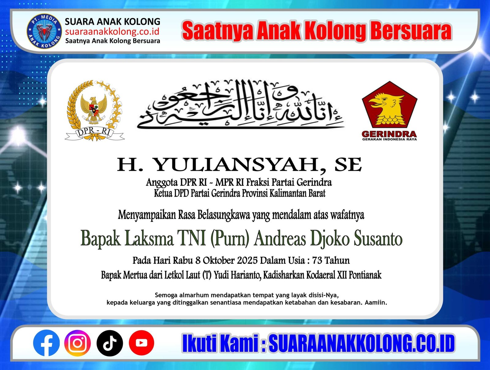 H. Burhanudin Ahad Ketua KKSS KalBar & Ketua FPK KalBar mengucapkan : Selamat Memperingati Hari Sumpah Pemuda 28 Oktober 2025