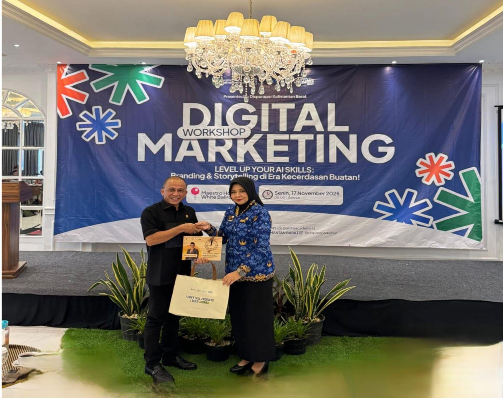 Pontianak, – Acara Workshop Digital Marketing, Level Up Your AI Skill, yang bertajuk “Branding & Storytelling di Era Kecerdasan Buatan” yang berlangsung di Maestro Hotel Pontianak, dihadiri oleh Dian Eka Muchairi, S.H., M.M., anggota Komisi 2 (dua) DPRD Provinsi Kalimantan Barat.