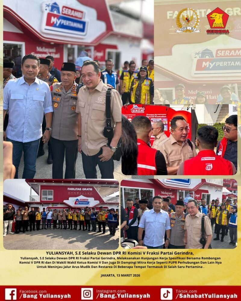 Suaraanakkolong.co.id/13/03/2026 JAKARTA – Menjelang musim padat arus lalu lintas, persiapan infrastruktur dan fasilitas umum menjadi prioritas utama. Mengawal hal tersebut, Anggota DPR RI Komisi V dari Fraksi Partai Gerindra, Yuliansyah, S.E., melakukan Kunjungan Kerja (Kunker) spesifik untuk meninjau langsung kesiapan di lapangan pada 13 Maret 2026.