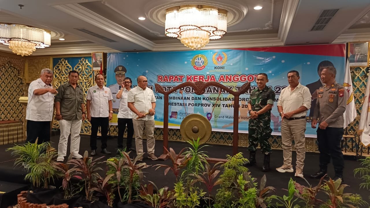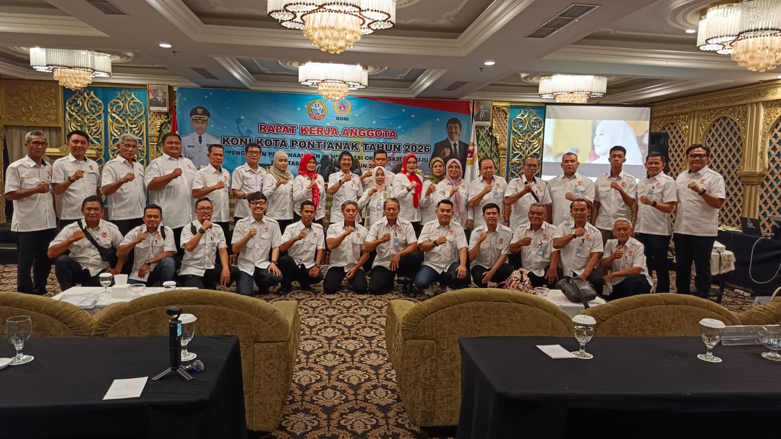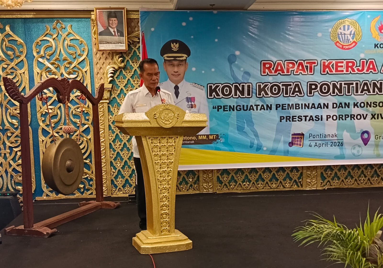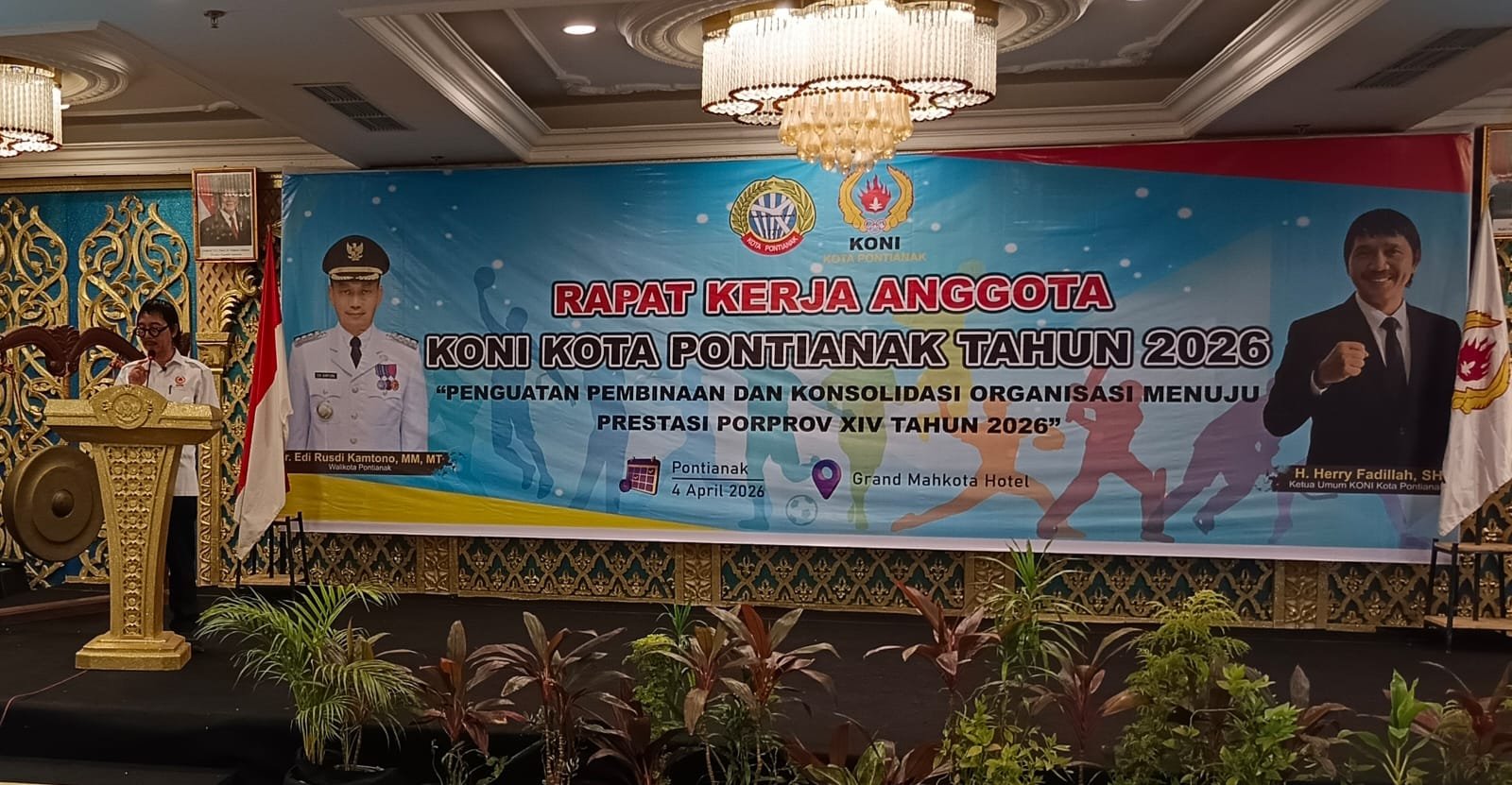 Rapat Kerja Anggota KONI Kota Pontianak resmi digelar Sabtu 4 April 2026 di ruang ballroom Takalar hotel Grand Mahkota Pontianak dengan tema “Penguatan Pembinaan dan Konsulidasi Organisasi Menuju Prestasi Porprov XIV Tahun 2026”.