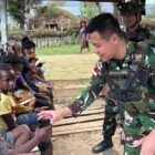 Yahukimo – Berbagi kebahagiaan kepada anak anak, Pos Kurima Satgas Yonif 641/Bru membagikan makanan ringan berupa…