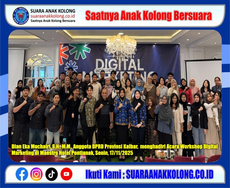Pontianak, – Acara Workshop Digital Marketing, Level Up Your AI Skill, yang bertajuk “Branding & Storytelling di Era Kecerdasan Buatan” yang berlangsung di Maestro Hotel Pontianak, dihadiri oleh Dian Eka Muchairi, S.H., M.M., anggota Komisi 2 (dua) DPRD Provinsi Kalimantan Barat.